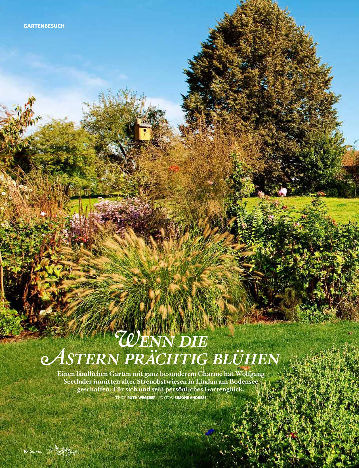 Astern in allen Nuancen von Blau bis Purpur verzaubern Wolfgang Seethalers naturnahen Garten bei Lindau. Der professionelle Gartengestalter rahmte das renovierte Wohnhaus und den geometrischen Hainbuchenkreisel mit einem ländlichen Garten ein. So entstand ein spannungsvolles und doch harmonisches Gesamtkonzept, das gut in die Region passt.....